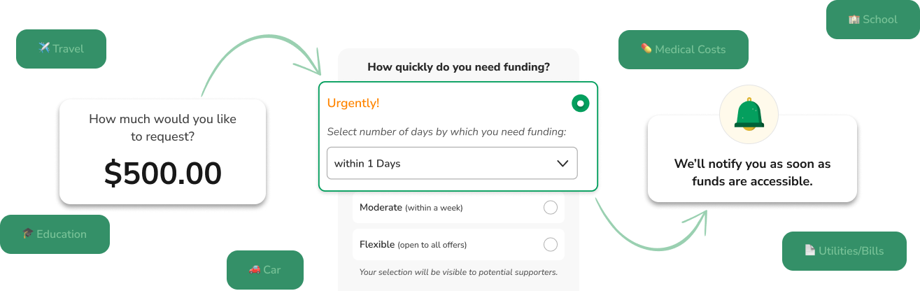 Debt is often like a snowball—small at first, but it rolls downhill and gets bigger, faster, and harder to manage. And we believe that when you’re in need, the last thing you should worry about is your debt growing out of control. Our model is simple: you get what you need, and you pay it back in manageable amounts. While the Lendee platform facilitates interest-free options, the specific terms may vary based on the approach set by the individual Supporters.